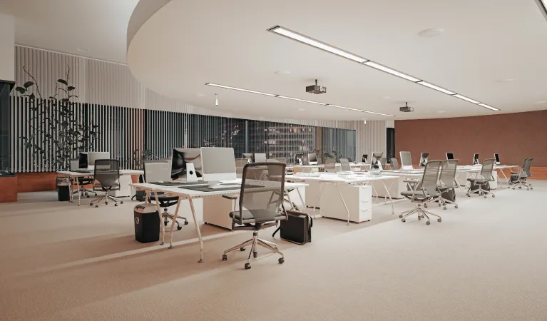 Technical Expertise: Ensure they possess expertise in acoustics, lighting design, AV integration, and ergonomic planning for large teams.